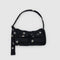 A baguette style purse with two external flap pockets for easy access to your essentials.