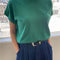 Ease Tee is an edgy dolman tee. She features a high crew neck, shoulder coverage without a sleeve, slightly rounded hem and a contrast rib banded sleeve opening and neck opening. With a crisp color palette and enough length to tuck in or out she is a cool girl's uniform.